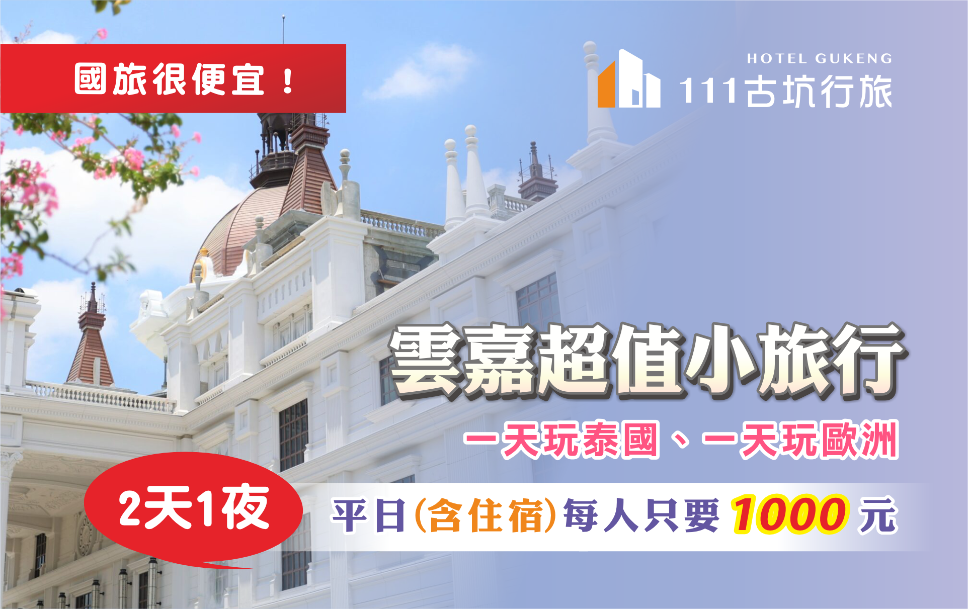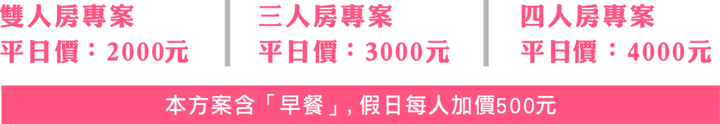 - 超值價格: 平日每人僅需 1000 元。
