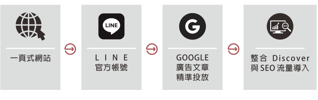 持續透過 Discover、LINE、FB 精準投放導入訂房流量
