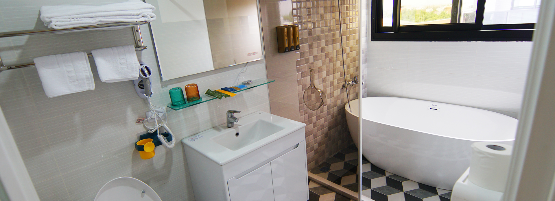 • 舒適客房:每間客房均配有獨立衛浴、浴缸、空調、電視及冰箱。